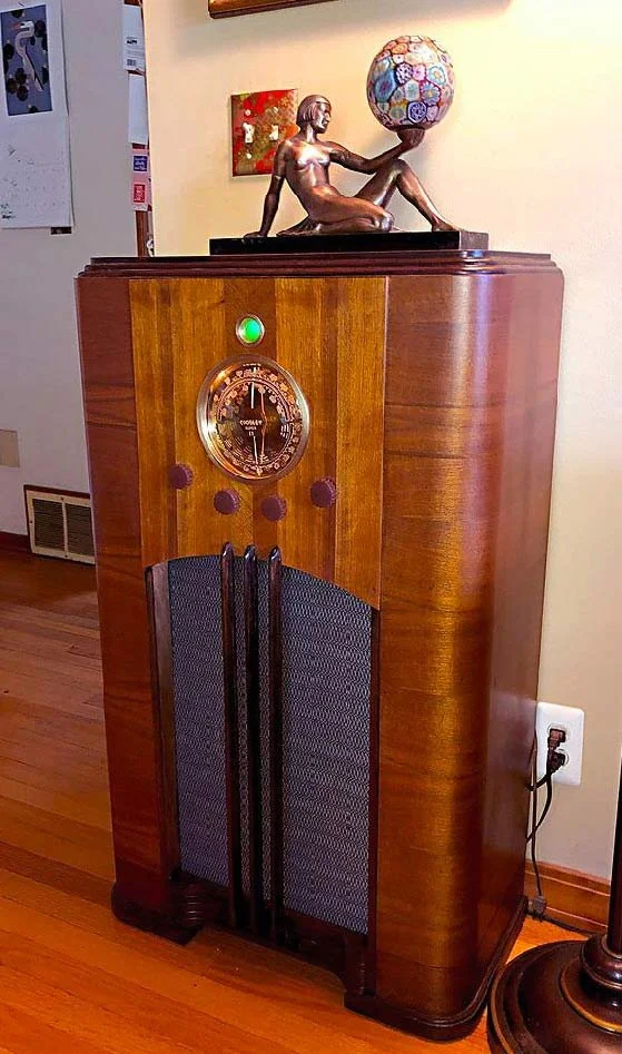 Today, she proudly rests atop my restored 1938 Crosley radio, a perfect pairing of elegance and history.