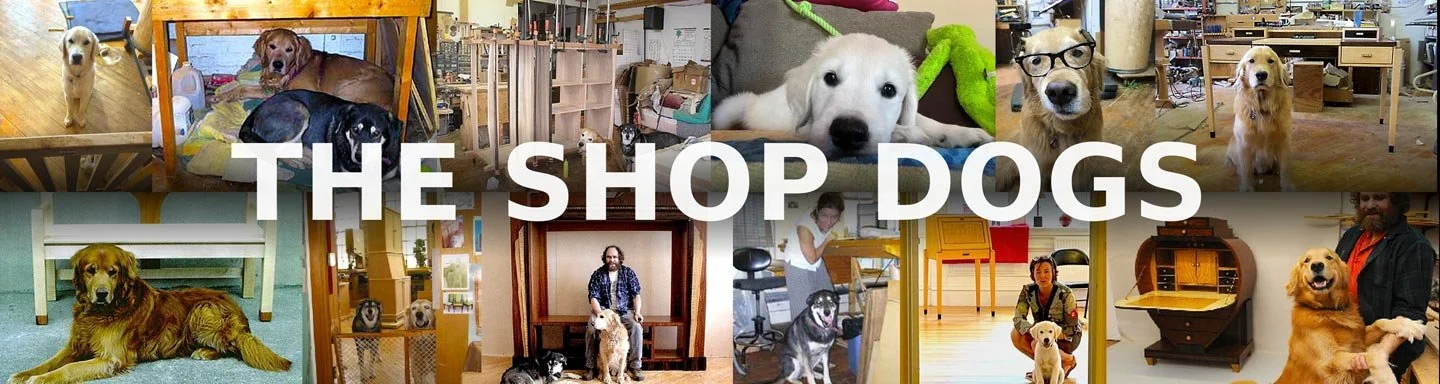 The first was Jasmine, a dark red Golden Retriever who came into my life at just six weeks old. For many years, Jasmine was simply a beloved pet, but after I completed the Genoa School of Furniture Design, he officially became the first Shop Dog. Lucky for him, he didn’t have to spend his days stuck at home on the couch. Jasmine lived a long and happy life, reaching the age of 15.